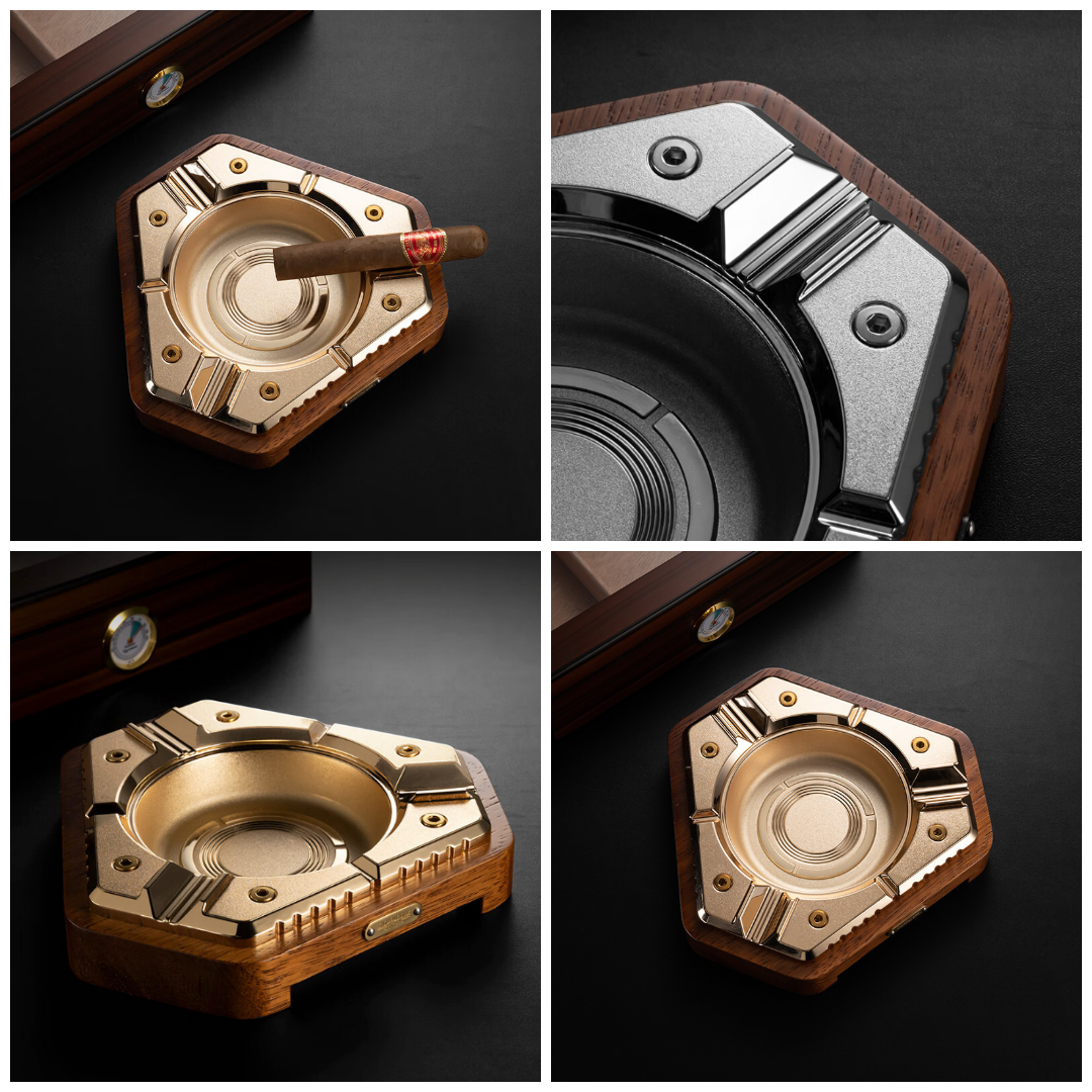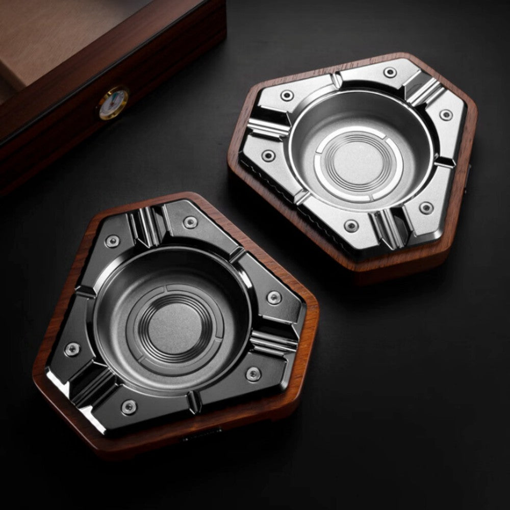 Bring a bold, refined touch to your smoking setup with this modern hexagon cigar ashtray. Designed with a geometric silhouette, solid wood base, and metal ashtray insert, it delivers a strong masculine look that feels both modern and substantial. The clean angular lines and weighted construction make it a standout piece for desks, cigar lounges, patios, coffee tables, and home bars.