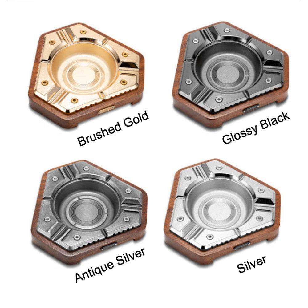 🔶 [SOLID & SUBSTANTIAL] Crafted with a metal ashtray body and solid wood base for a sturdy, premium feel. Its weight helps keep it stable during use.