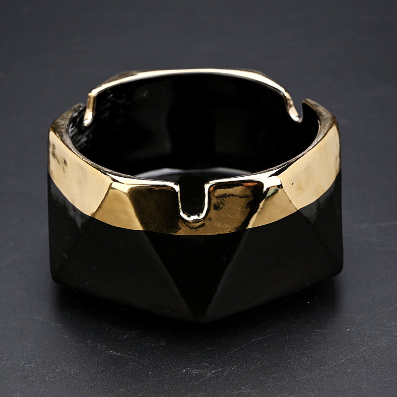 Bring modern Nordic elegance to your space with this geometric ceramic ashtray, finished with a striking gold-edged rim. Clean lines, soft colors, and premium glazing make it both a functional ashtray and a refined décor piece for home, office, or lounge settings.