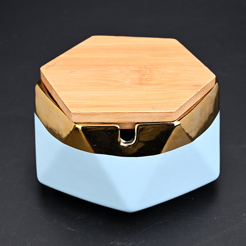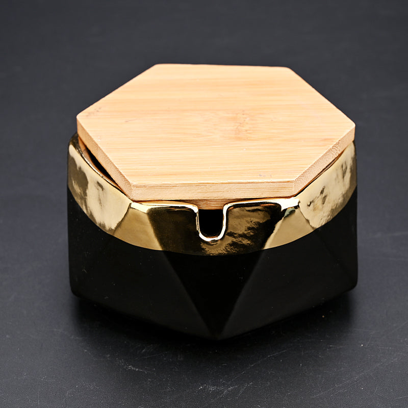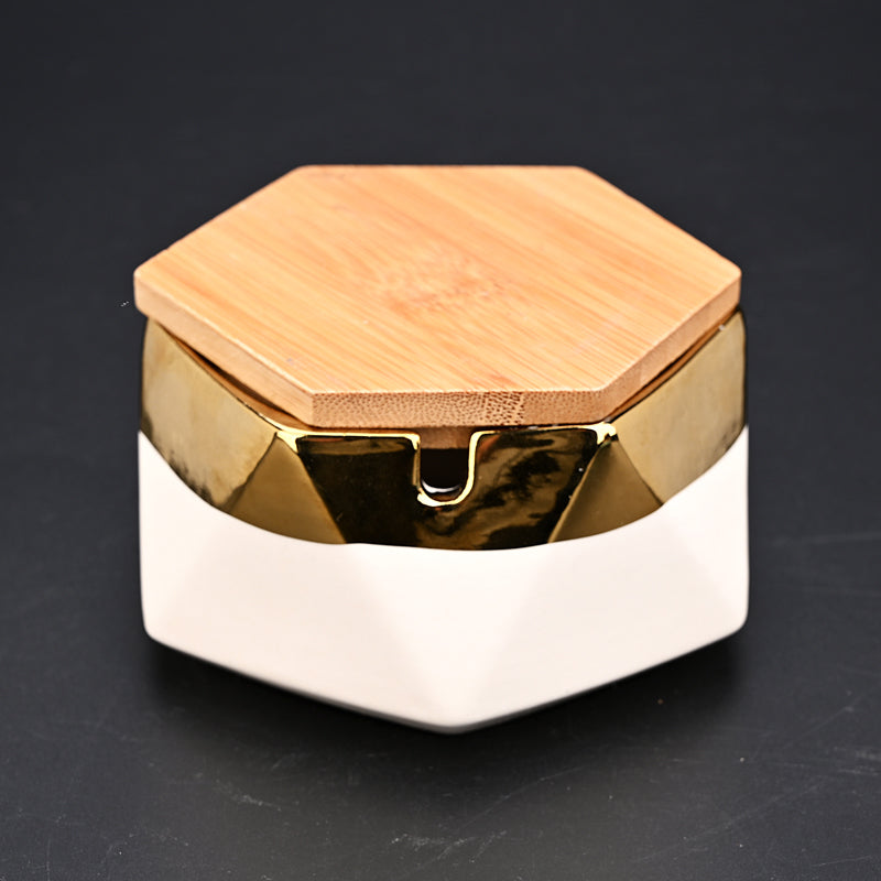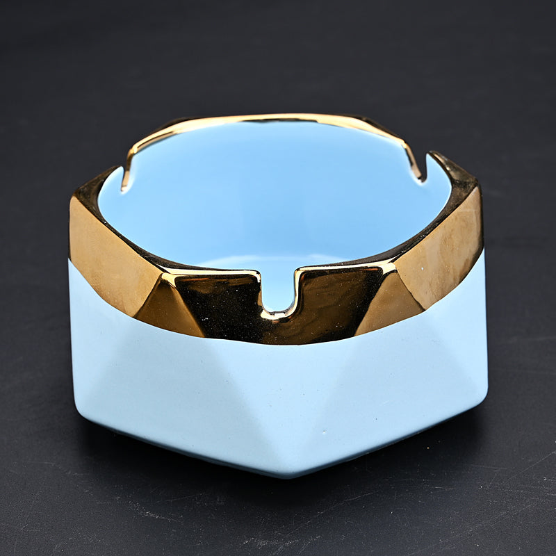 Nordic Hexagon Ceramic Ashtray with Gold Rim