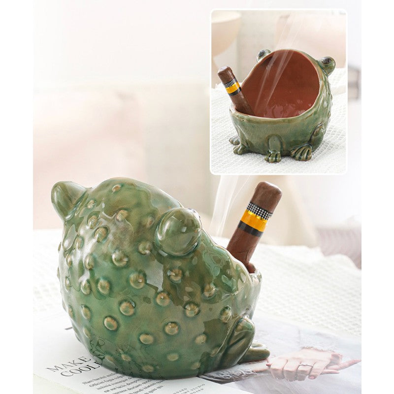 Playful yet practical, this handcrafted ceramic frog ashtray adds a touch of character to any space while serving a genuinely useful purpose. Shaped like a wide-mouthed frog with expressive details and a glossy glaze, it works beautifully as an ashtray—or as a decorative holder for small everyday items.