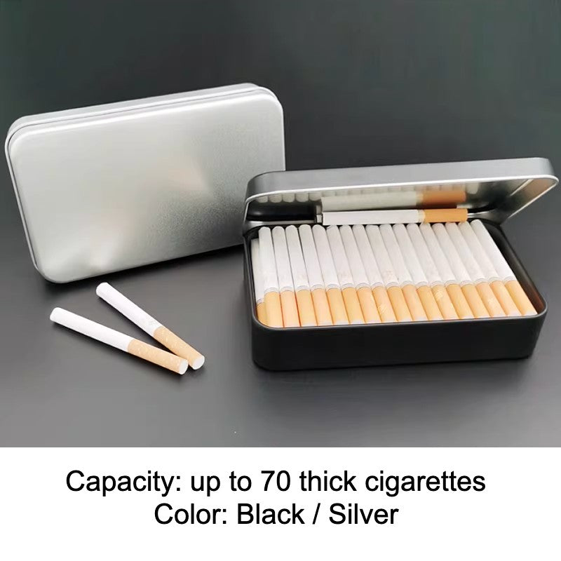 Keep your cigarettes protected, organized, and discreet with this extra large metal cigarette case, designed to hold up to 70 thick cigarettes in a slim, durable form. Ideal for daily carry, travel, or storage at home, it offers a clean, minimalist look with practical capacity.