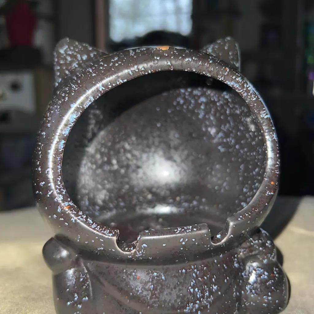 Cats are symbolic of rebirth and resurrection, per their nine lives. Cats also symbolize mystery, magic, unpredictability, and even healing. This cute ashtray is a perfect addition to cat lovers!