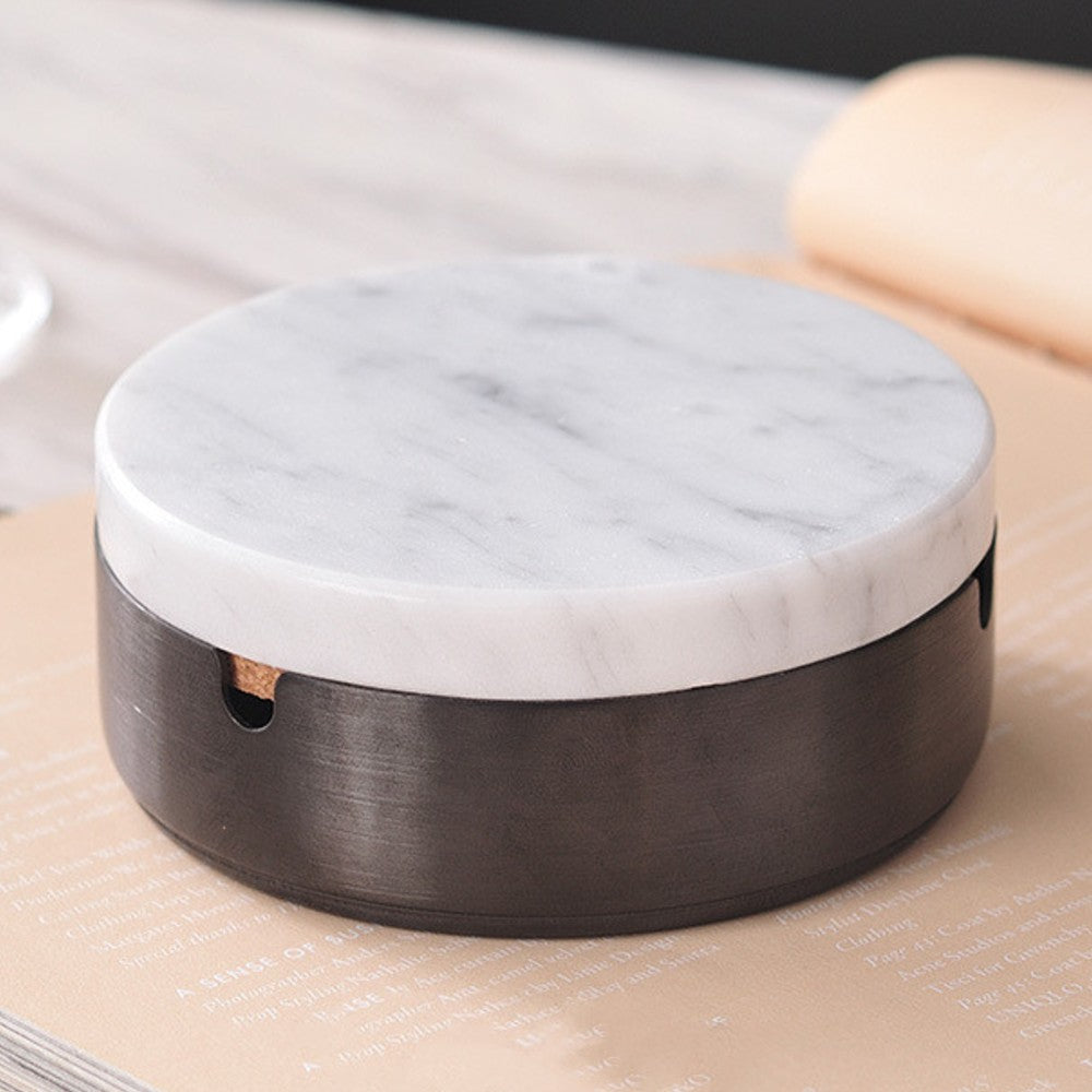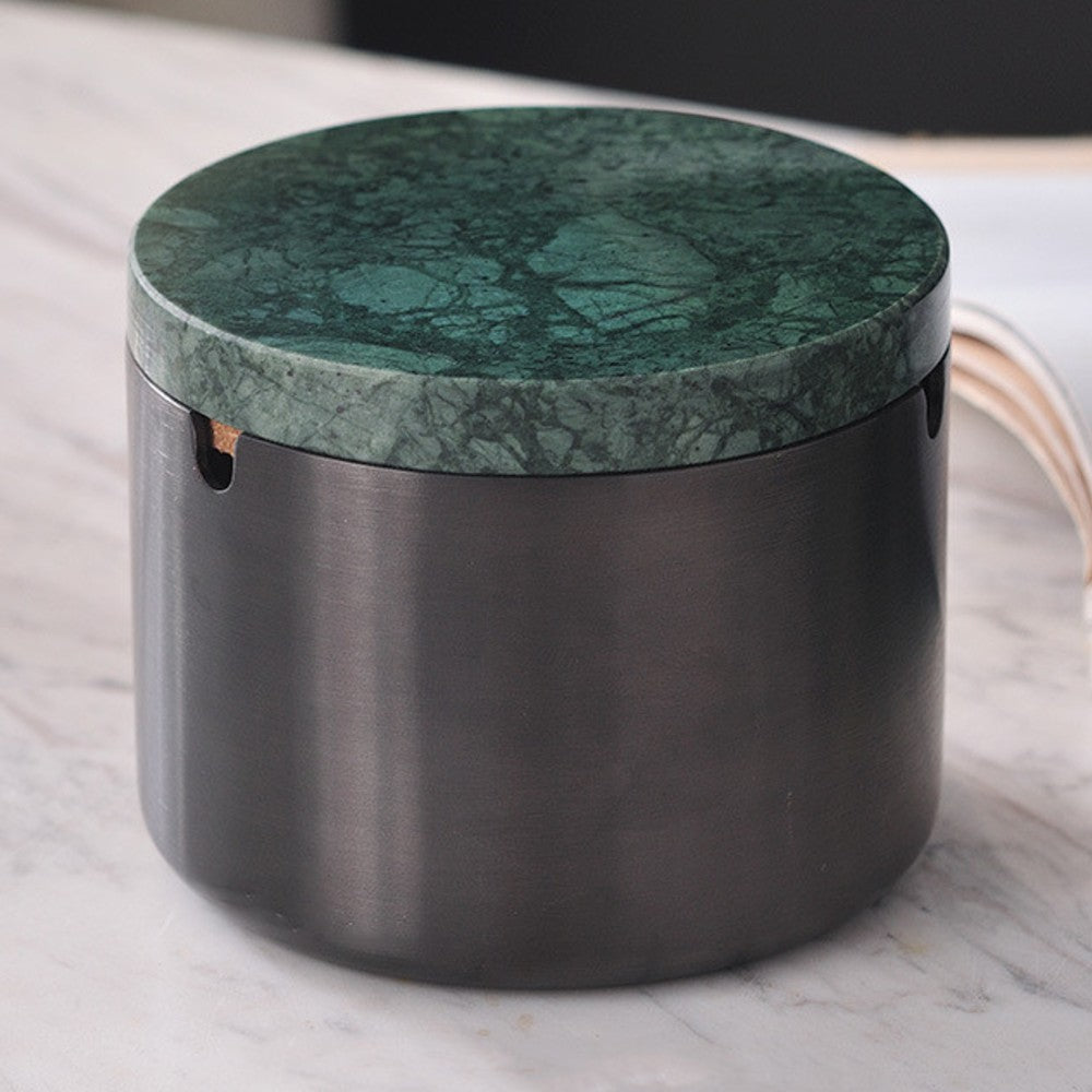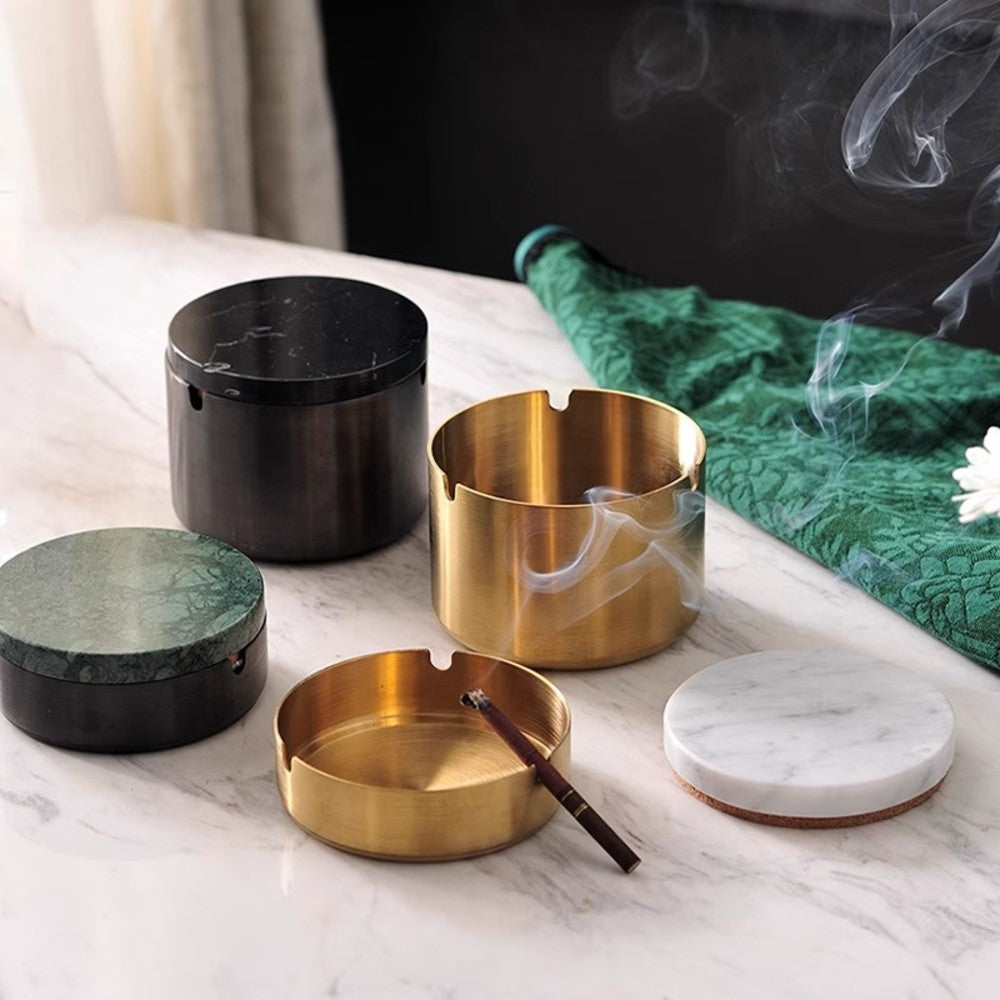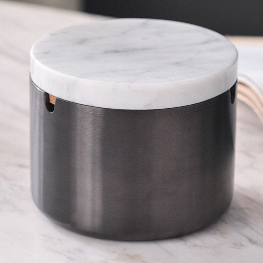 Elevate your smoking space with this luxurious Covered Ashtray with Lid, blending sleek stainless steel with a smooth marble-style lid. Choose from tall or short versions to suit your style.