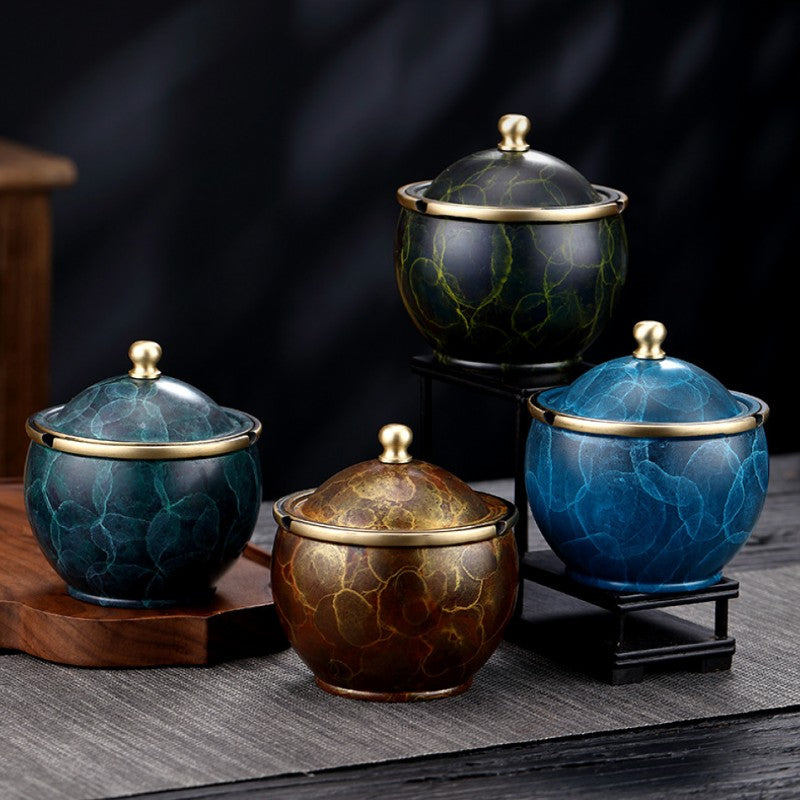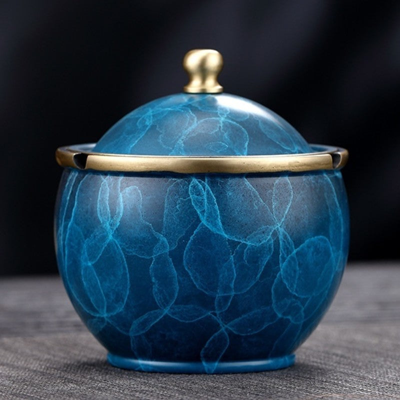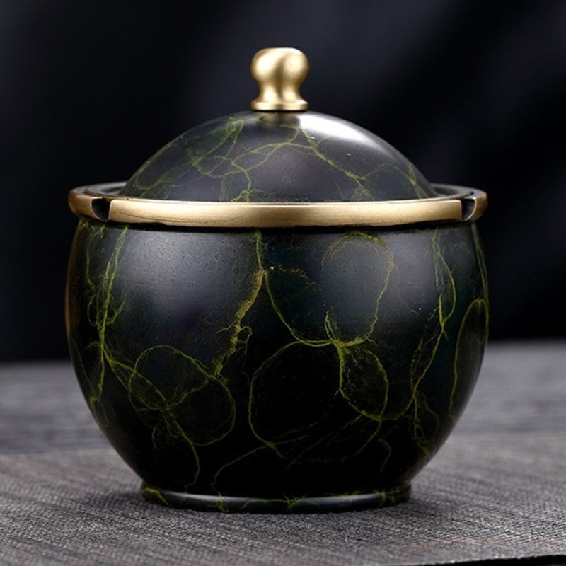 Bring refined elegance to your space with this luxury brass ashtray with lid, featuring a rich marble-inspired texture and a balanced, sculptural form. The rounded silhouette feels substantial and refined, making it both visually pleasing and practical for everyday use.