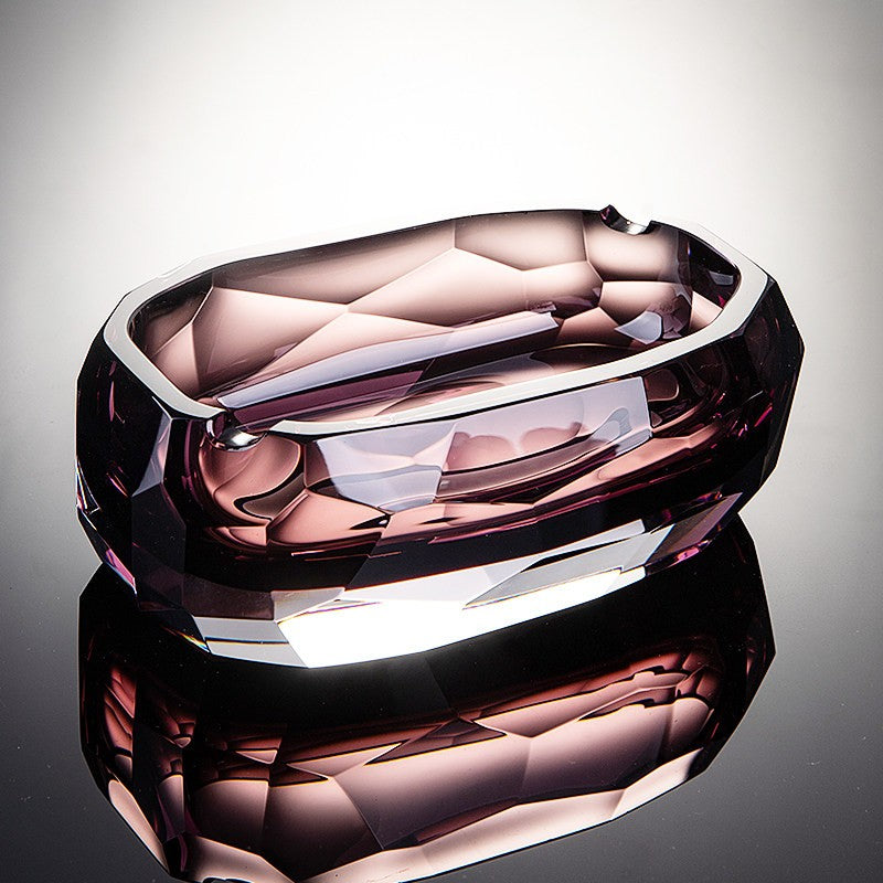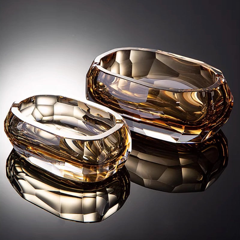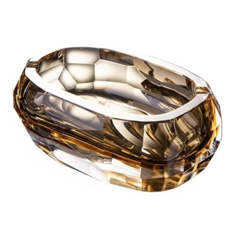 Crafted from thick, transparent crystal glass, the ashtray features a polished electroplated finish that enhances depth, clarity, and color. The substantial weight and smooth contours give it a premium, reassuring feel—both decorative and functional.