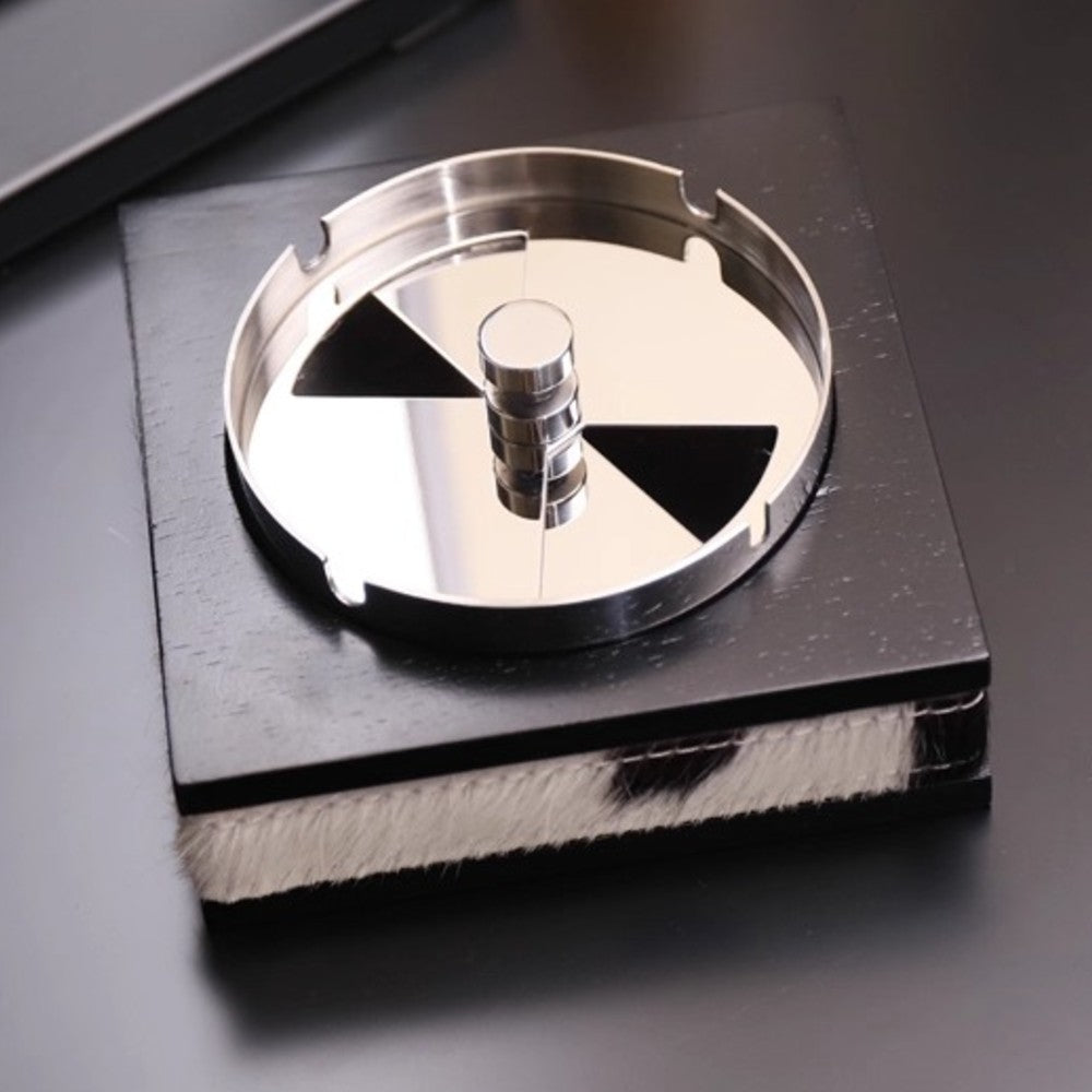 This ashtray brings natural texture and modern function together in one elegant piece. The base is wrapped in finely woven horsehair, giving it a tactile, high-end finish, while the stainless steel insert with a rotatable lid keeps ash and odor under control.