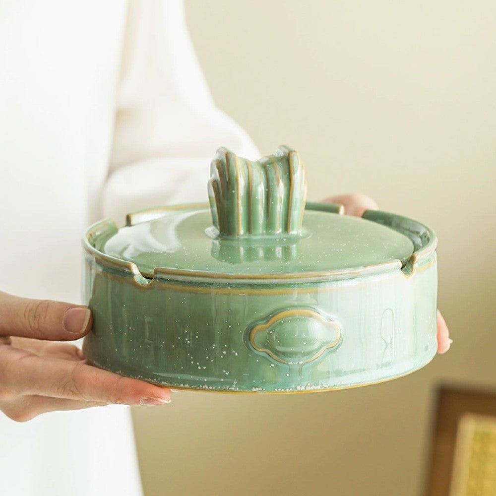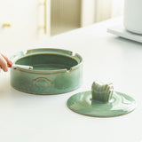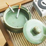 Check out this green, lidded ashtray! Made of high-quality materials by seasoned ceramists.