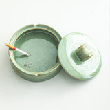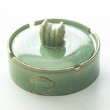 Green Ashtray with Lid for Patio Ceramic Vintage 6.1"